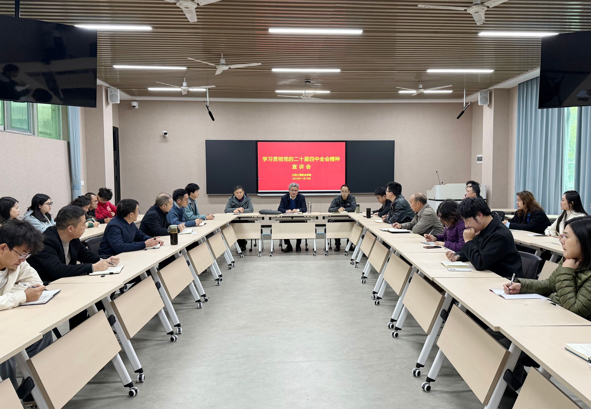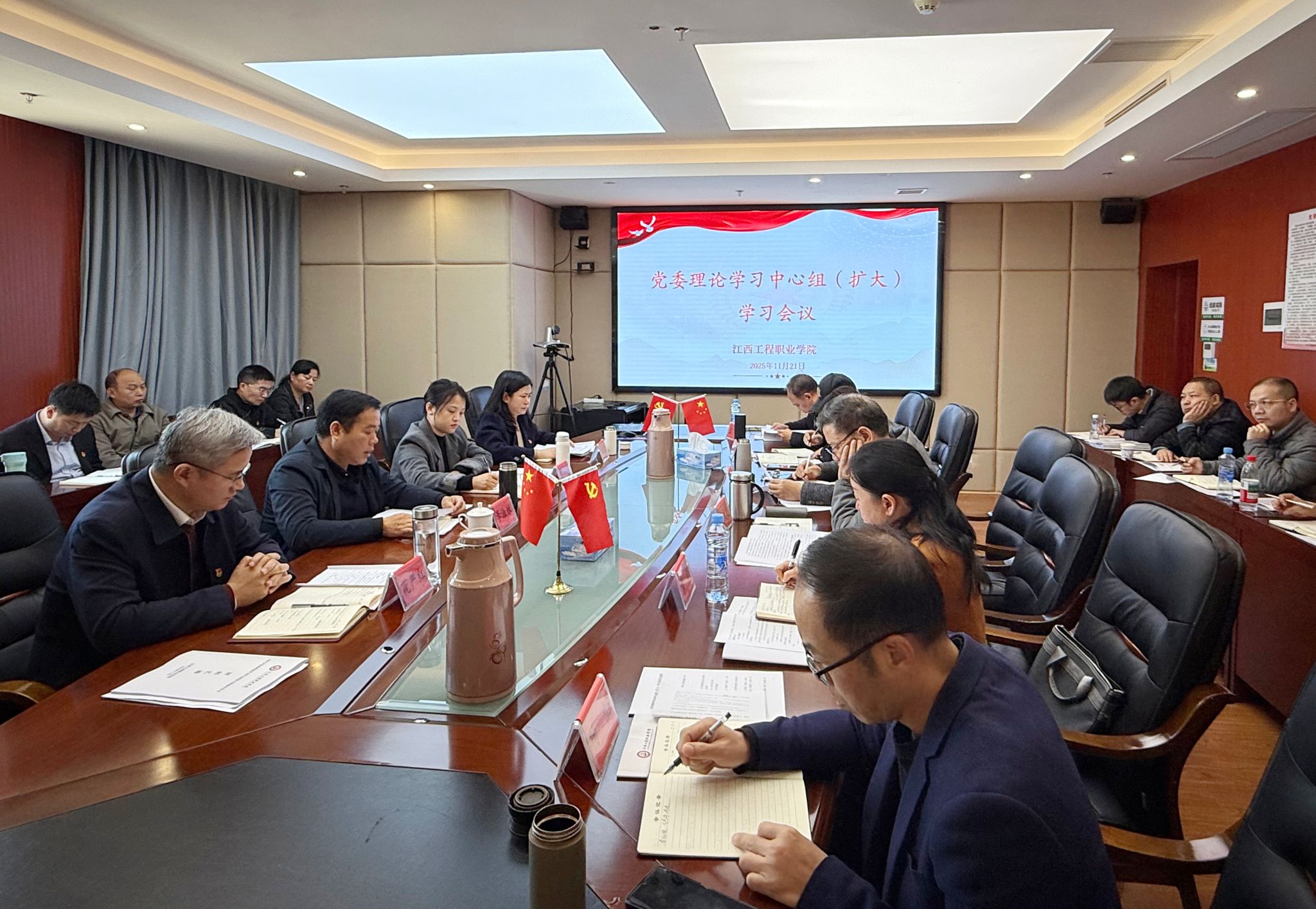 11月21日上午,学校召开2025年党委理论学习中心组第十二次学习(扩大)会议,专题学习贯彻党的二十届四中全会精神。江西建设职业技术学院党委委员、副院长李淑林,党委...