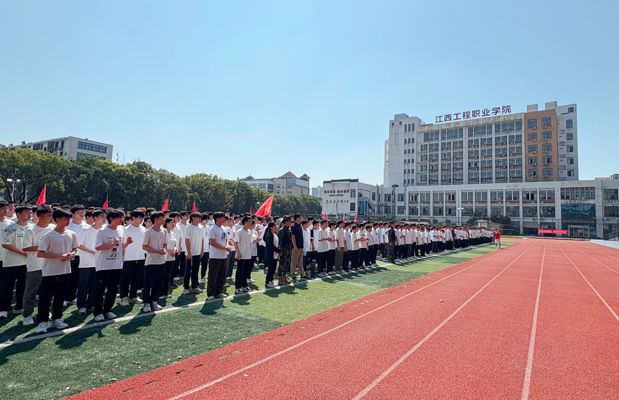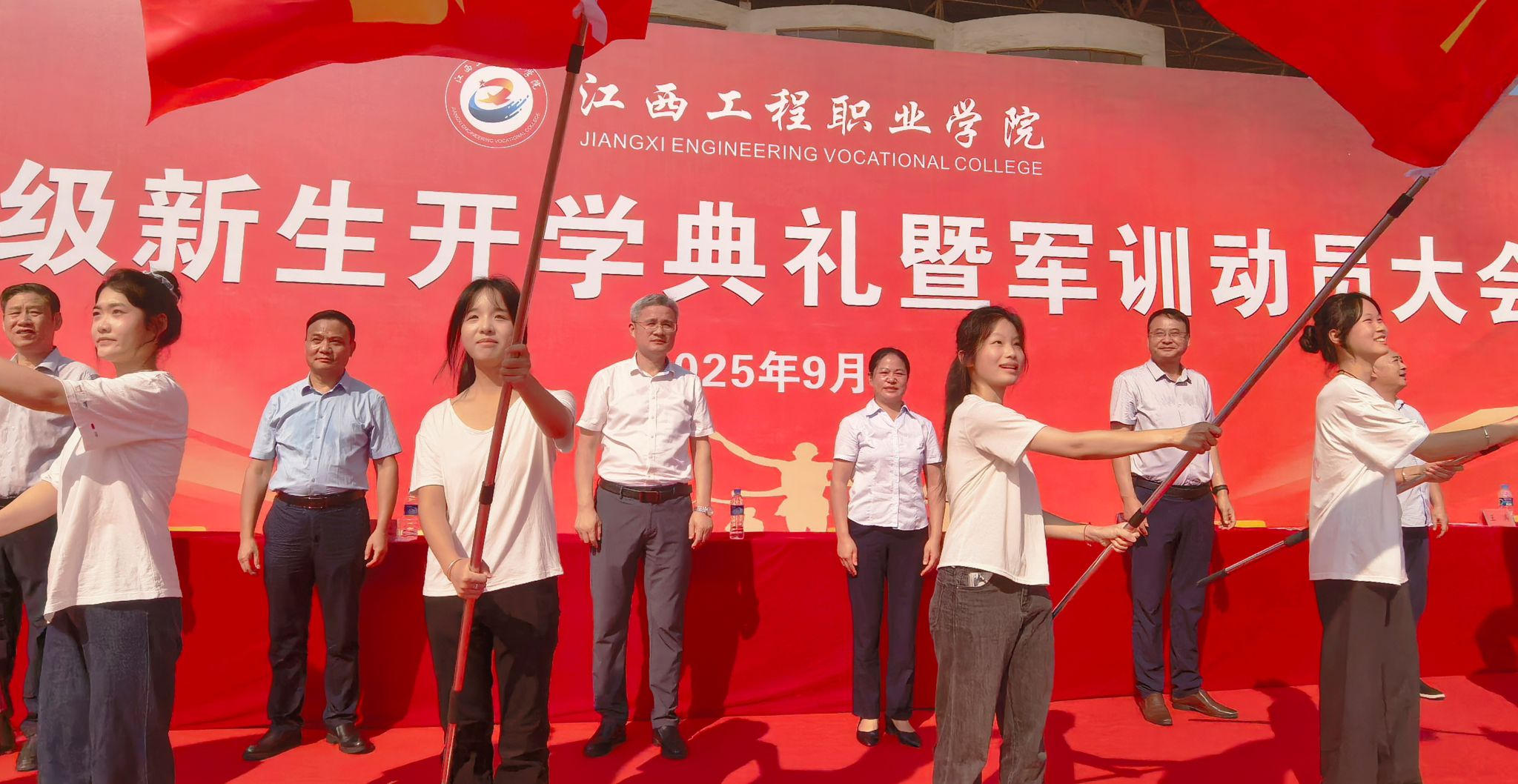 金秋送爽启新程,丹桂飘香迎学子。近日,我校2025级新生开学典礼暨军训动员大会在各校区举行。5000余名新生怀揣憧憬、跨越山海,在江西工程职业学院校园开启逐梦新篇。学校党委书记花严红,党委副书记、校长孙江云等校领导班子成员、各二级学院负责人及新生辅导员出席典礼,与新生共同见证这一重要时刻。
